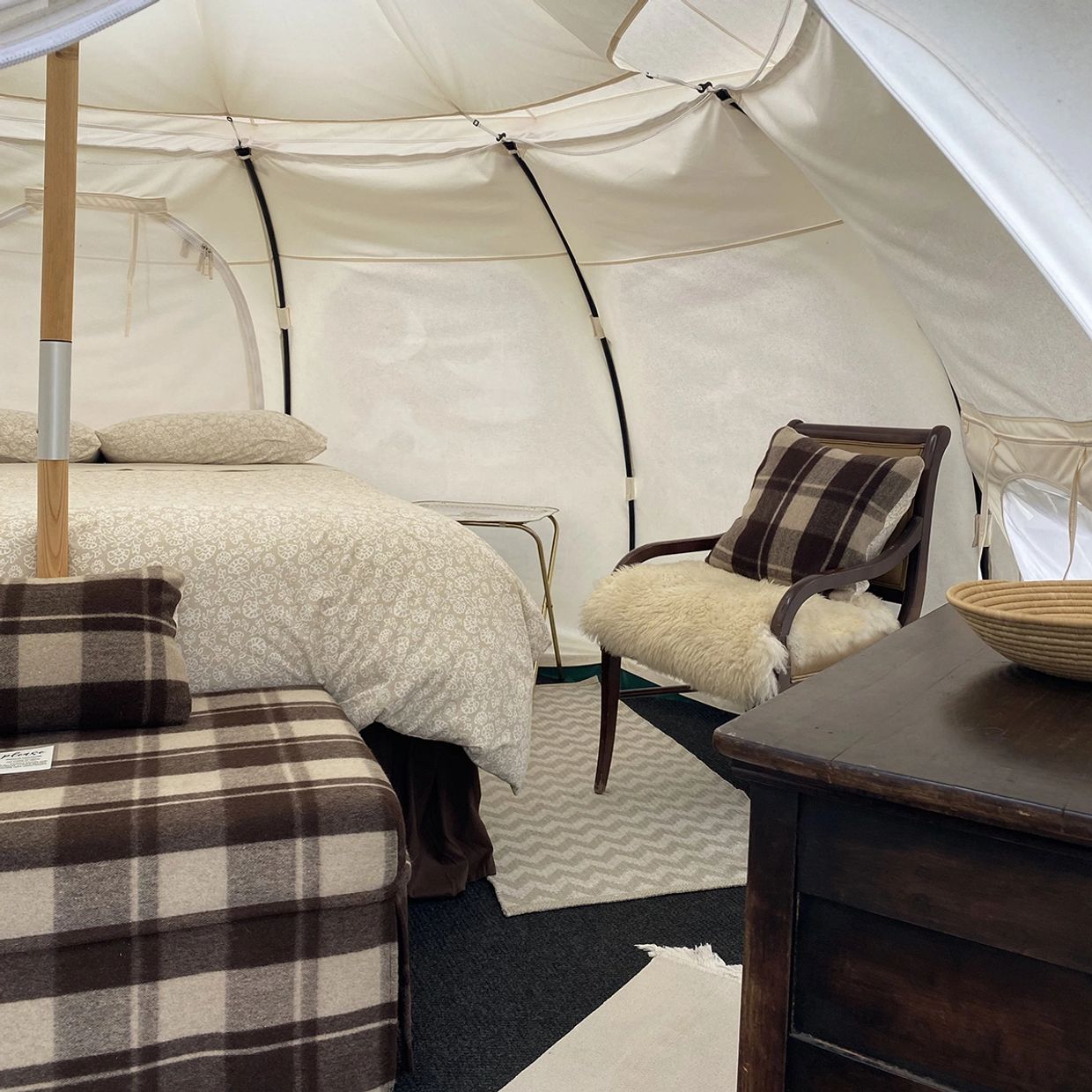 Perfect for sharing with friends or extended family or put your teens in their own tent while you enjoy a romantic glamping getaway in yours. Two tents available all season.